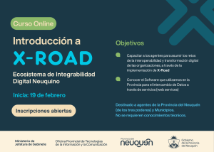 X-Road® es un software de código abierto y una solución de ecosistema que proporciona un intercambio de datos unificado (interoperabilidad) y seguro entre las organizaciones. Se utiliza en Neuquén para intercambiar datos a través de servicios entre las Fuente Auténtica (FA).