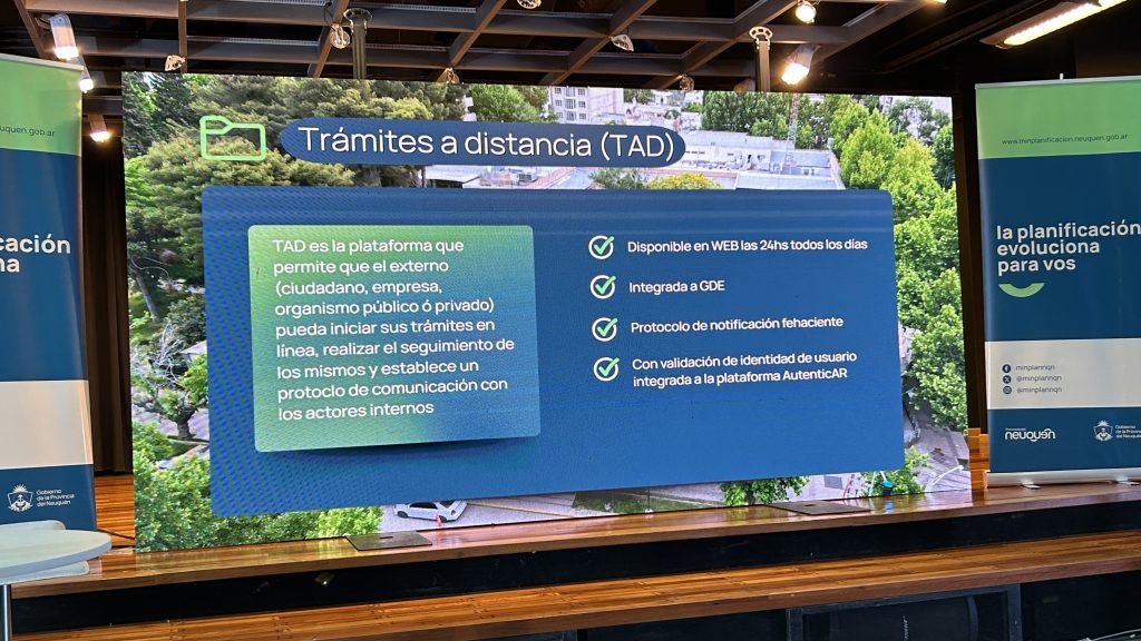 Asimismo, se destacó la implementación de la plataforma Trámites a Distancia (TAD), que permite que ciudadanos, empresas y organismos externos puedan iniciar, seguir y comunicar trámites en línea, integrados al sistema de Gestión Documental Electrónica (GDE) y con validación de identidad a través de AutenticAR.