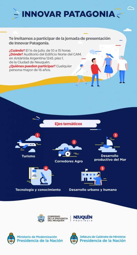 Innovar Patagonia es la plataforma de innovación abierta y global del Proyecto Patagonia dirigida a todos los que quieran presentar sus ideas para cambiar la región. Se invita a todas las personas mayores de 16 años interesadas en generar una realidad que les mejore la vida con nuevas ideas y proyectos. ¿CUANDO? El 14 de […]